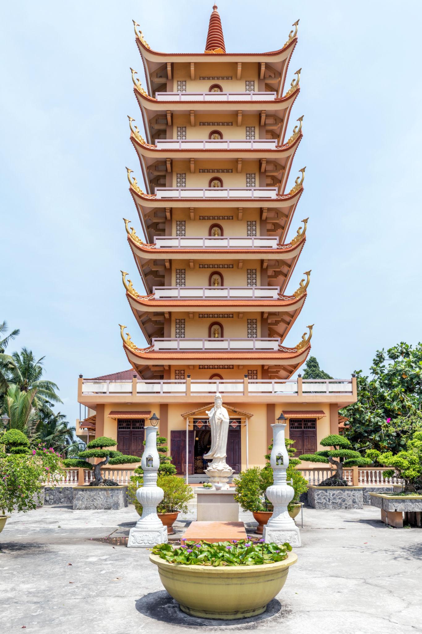 After breakfast proceed for Full Day Excursion to My Tho - the homeland of coconut and family factories with local products like coconut candy, rice paper. Upon arrival, embark on the boat cruising on the mighty Mekong River viewing the life to the local people live along the banks. We stop to visit an island in the area, enjoy the fresh tropical fruits served in the heart of the lush garden accompanied by traditional southern Vietnamese folk music. Later, embark on other small boats rowed by the local people thru the small canals shadowed by water coconut trees to visit the local factories. There you will taste the honey tea and see the local people produce the coconut candy milk and of course you also can try it or stroll in the garden where the locals feed honeybee. In the afternoon, continue to visit Vinh Trang pagoda, a famous pagoda in the area with architecture combination of Chinese, Cambodian, and French cultures. Return to Ho Chi Minh late in the afternoon.