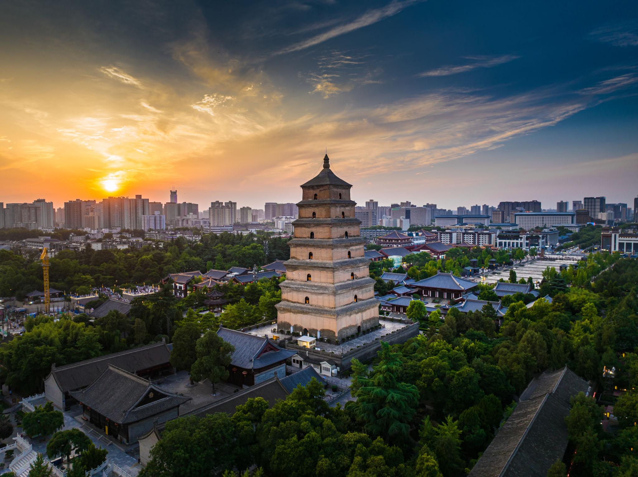 After breakfast, transfer to the station for a high-speed train to Xi’an. On arrival, transfer to the hotel. Visit Big Wild Goose Square and enjoy the fountain show.